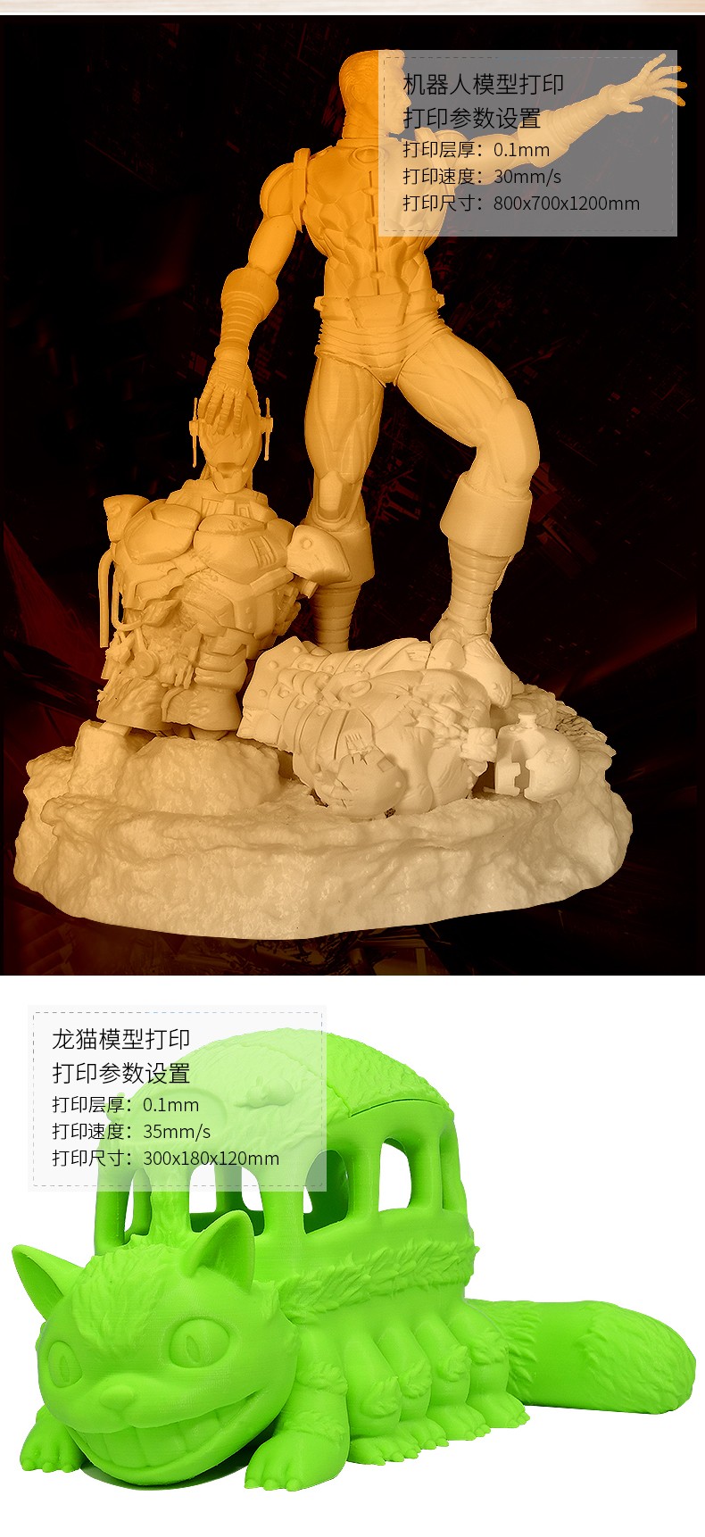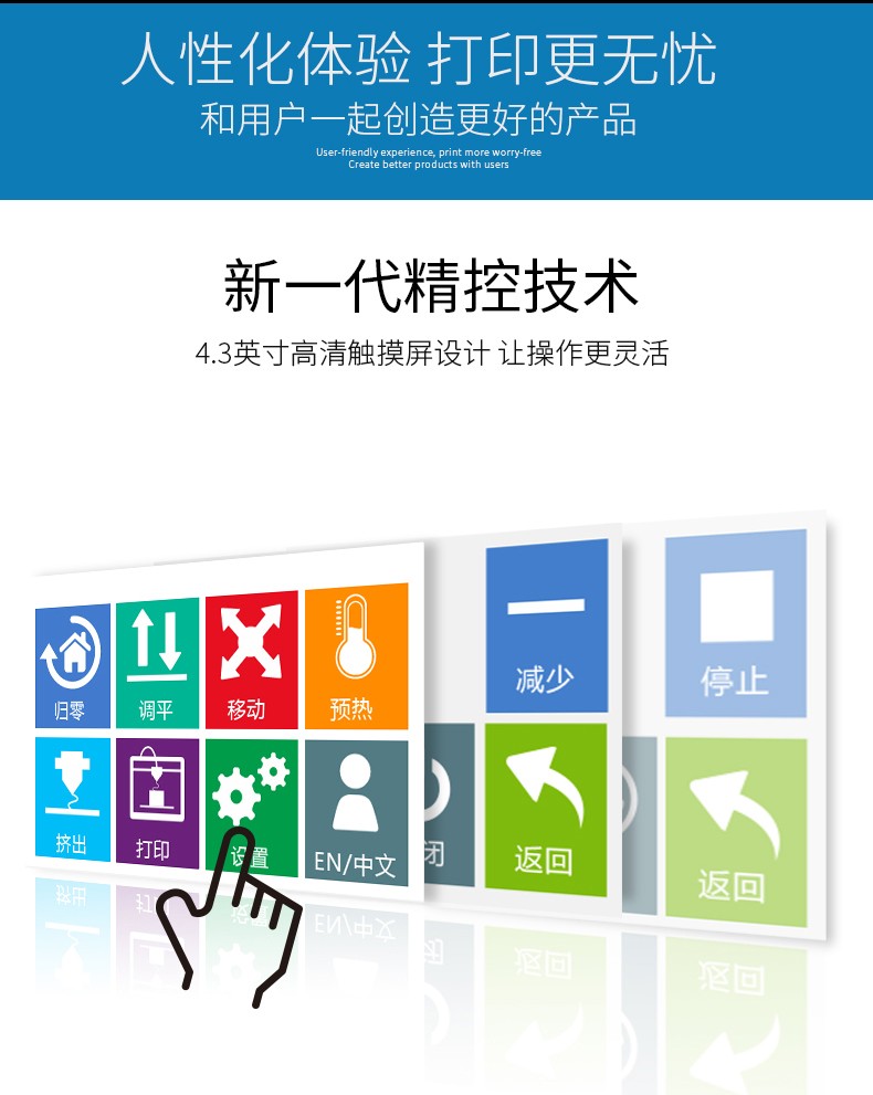 4.3英寸電容觸摸屏,清晰美觀,操作簡單;FA特制平臺,打印完成可取下平臺,輕松取模;模塊化一體式封閉設計,提高模型打印成功率;內置空氣過濾系統,有效濾除打印過程中產生的顆粒;具有暫停續打、斷電續打及斷料檢測等功能;高精度,大尺寸打印,可應對各種結構復雜的手辦模型